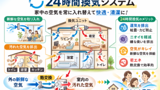 2003年の建築基準法改正で、住宅に24時間換気システムが義務付けられました。24時間換気システムの仕組みについて解説していきます。